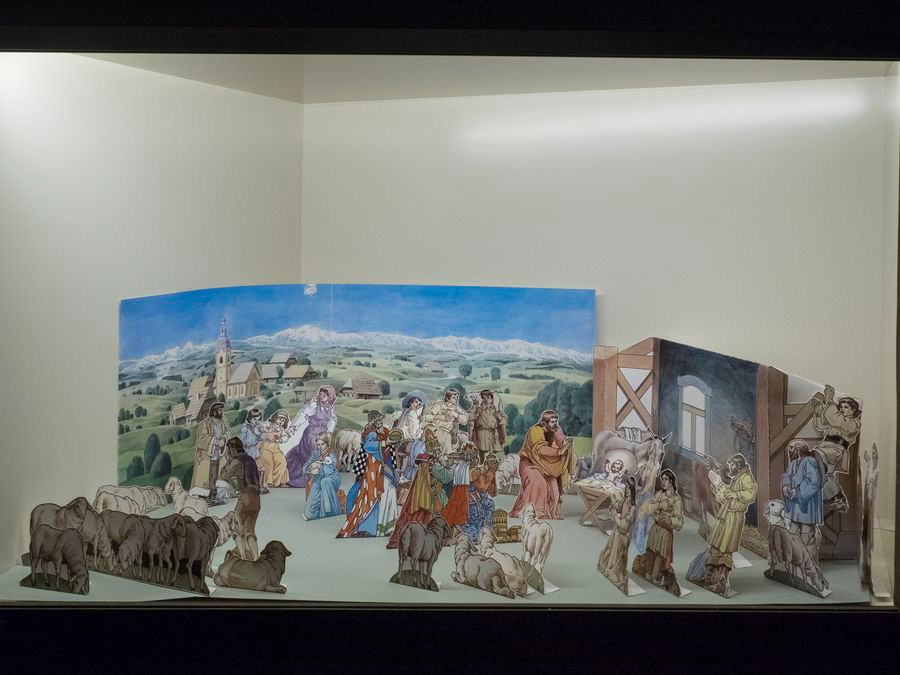 Družinske jaslice, iz obdobja pred letom 1900. Muzeju sta jih poklonila zakonca Ferlič iz Ljubljane in so bile del njihove družinske zapuščine. Generacije so te jaslice običajno postavljale na omarico ob bolniški postelji, z željo po čim hitrejšem okrevanju bolnika.